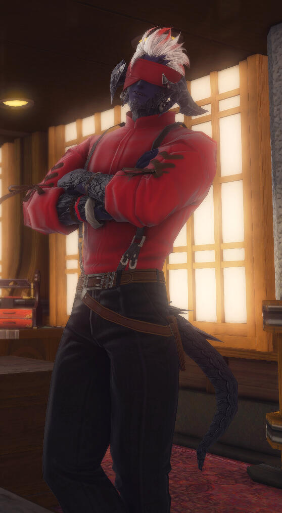 This red skinned Au Ra has traveled from the far reaches of the eastern world to bring you quality conversation and hospitality